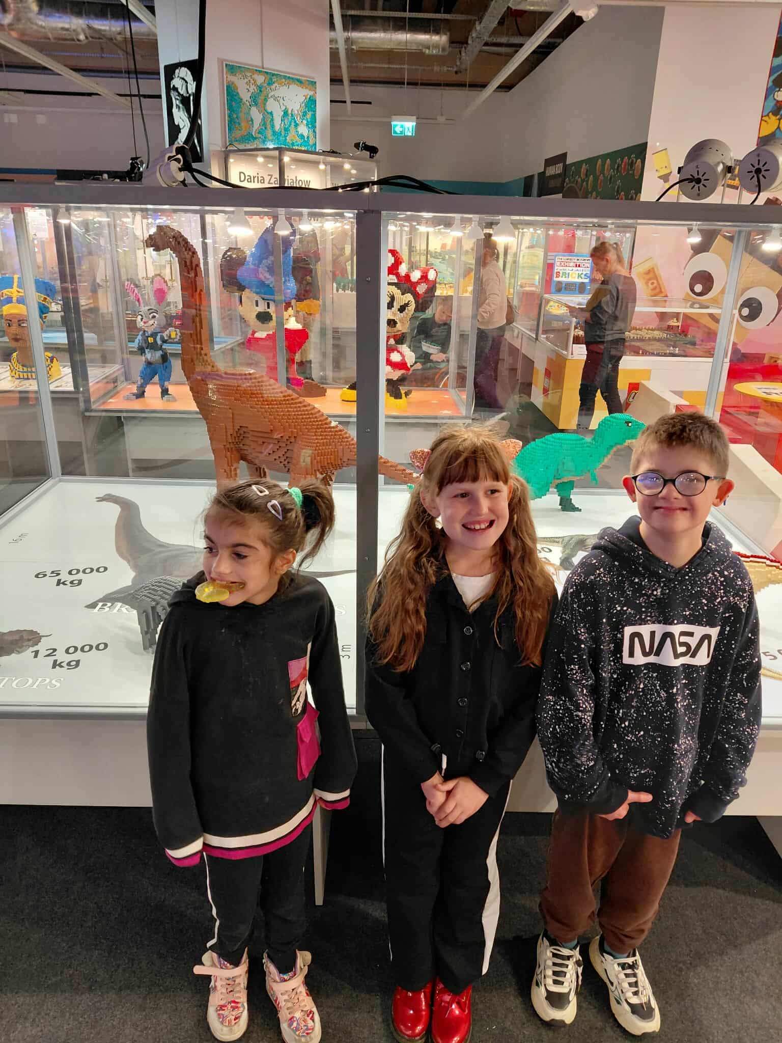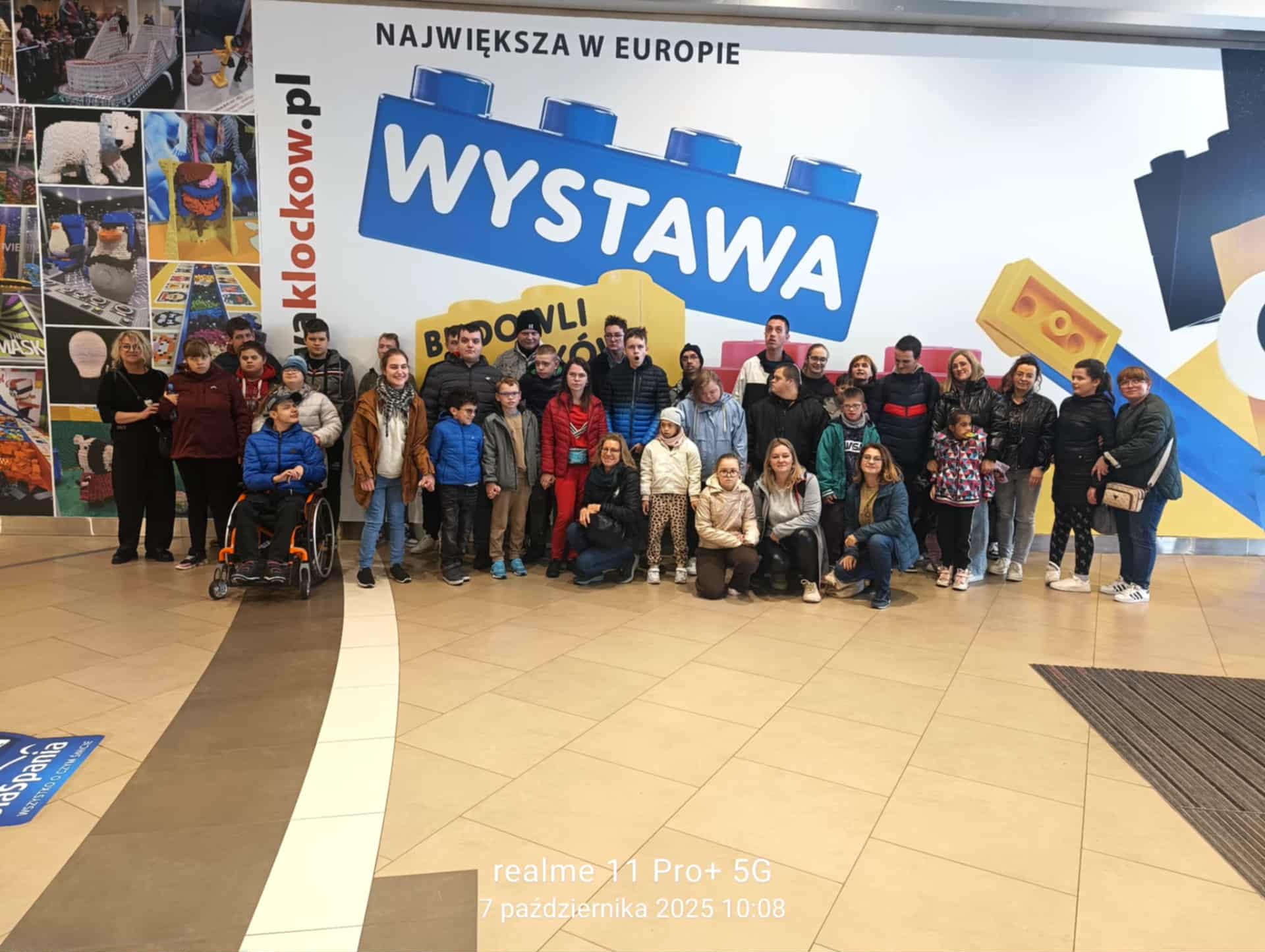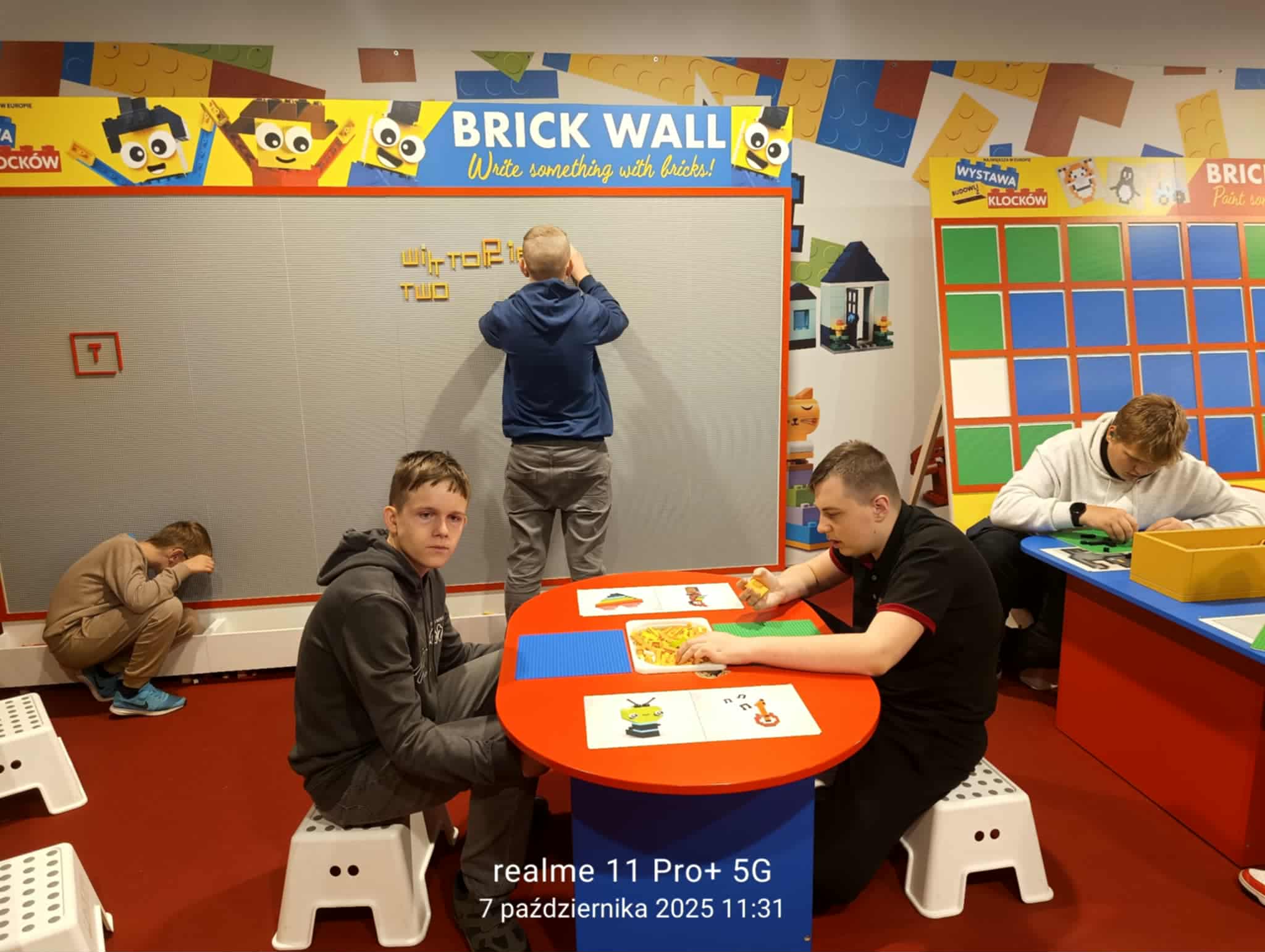 Nie zważając na jesienną szarugę, w dniu 7 października 2025 grupa uczniów naszej placówki wybrała się na wycieczkę do Łodzi. Z ciekawością zwiedzali największą w Europie wystawę budowli z klocków LEGO znajdującą się w Porcie Łódź. Do obejrzenia mieli niemal 100 makiet, setki modeli i 6 milionów klocków LEGO a z nich zbudowane znane światowe zabytki, postacie z bajek, świat dinozaurów, wynalazków i odkryć. W strefie Fun zone tworzyli własne, kreatywne budowle. Zabawy z klockami dostarczyły dzieciakom i młodzieży mnóstwa radości.